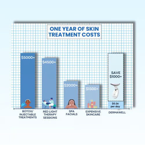 By using Dermawell to sculpt and tighten your face at home, you’ll save thousands on facials, Botox, and expensive skincare treatments. No more overpriced spa visits or temporary fixes - just real, lasting results. Once you see how effortlessly it works, you’ll never want to spend a fortune on in-office treatments again!
